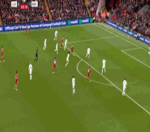 第84分钟,埃基蒂克脚后跟做球,维尔茨兜射入死角,利物浦3-1